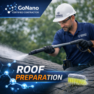 Renewed Roofing applies the recommended GoNano NuRoof treatment according to manufacturer guidelines.
